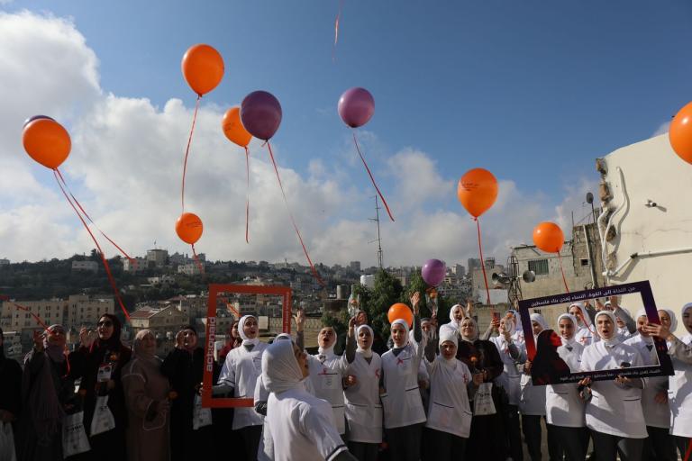 الخليل– الأرض الفلسطينية المحتلة - نفذت مؤسسة آكشن إيد- فلسطين، ضمن فعاليات حملة الـ16 يوم العالمية لمناهضة العنف المبني على النوع الاجتماعي، فعالية توعوية إستهدفت النساء في البلدة القديمة في مدينة الخليل H2، بهدف رفع الوعي بحقوق النساء والمطالبة ببيئة آمنة وخالية من جميع أشكال العنف والتمييز. تم تنظيم هذه الفعالية بالشراكة مع مركز المرأة للإرشاد القانوني والإجتماعي ومنظمة أطباء بلا حدود وكلية التمريض في جامعة الخليل وجمعية أصدقاء المريض وشركة "To-me لمواد التجميل .