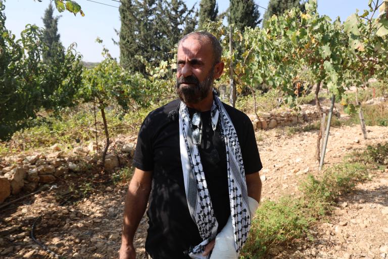 Mahmoud recounts: “One night, settlers attacked my land and destroyed dozens of olive and grape trees, around 50 to 60 trees. For me, this was not just the destruction of trees, but the destruction of many years of work and effort. An olive tree takes years to grow and produce, and a farmer cares for it like his own children.